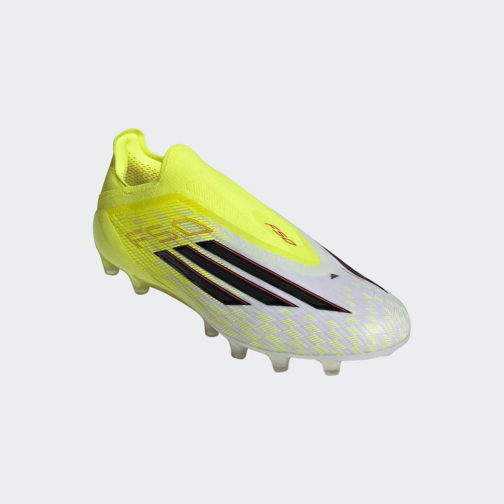 • La bota de fútbol sin cordones F50 ELITE Césped Artificial es un punto de encuentro entre la velocidad y la precisión. El estampado renovado de la parte superior encarna la cima del rendimiento.
